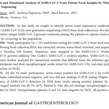 The objective of this study was to compare gut microbiome diversity and composition in SARS-CoV-2 polymerase chain reaction (PCR)-confirmed positive patients whose symptoms ranged from asymptomatic to severe, versus PCR-negative exposed controls. Using a cross-sectional study design, we used shotgun next-generation sequencing (NGS) to evaluate microbiome composition and diversity in both patients with SARS-CoV-2 PCR-confirmed infections presenting [...]