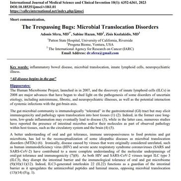 Gut microbes are immunologically tolerated in the gastrointestinal tract but trigger aggressive immune responses upon translocation across the gut barrier. Although oral tolerance, a physiological process that dampens immune responses to food proteins and commensal microbiota, remains poorly defined, significant progress was made during and after the Human Immunodeficiency Virus epidemic in the 1980s and the discovery of regulatory T cells in 1995. Additional insight was gained after the discoveries of innate lymphoid cells in 2008 and the functional elucidation of mucosal mast cells. Prior to the historical discovery of human pathogens, the etiologies of most human diseases were considered unknown. The same was true about many genetic disorders prior to the Human Genome Project. Here, we hypothesize that many of the remaining idiopathic conditions, including autoimmune, fibroproliferative, and neuropsychiatric diseases as well as some cancers, can be considered microbial translocation disorders triggered by the host immune responses to extraintestinal gut microbes and/or their constituent parts. . [...]