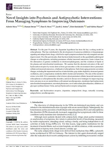 For the past 70 years, the dopamine hypothesis has been the key working model in schizophrenia. This has contributed to the development of numerous inhibitors of dopaminergic signaling and antipsychotic drugs, which led to rapid symptom resolution but only marginal outcome improvement. Over the past decades, there has been limited research on the quantifiable pathological changes in schizophrenia, including premature cellular/neuronal senescence, brain volume loss, the attenuation of gamma oscillations in electroencephalograms, and the oxidation of lipids in the plasma and mitochondrial membranes. [...].